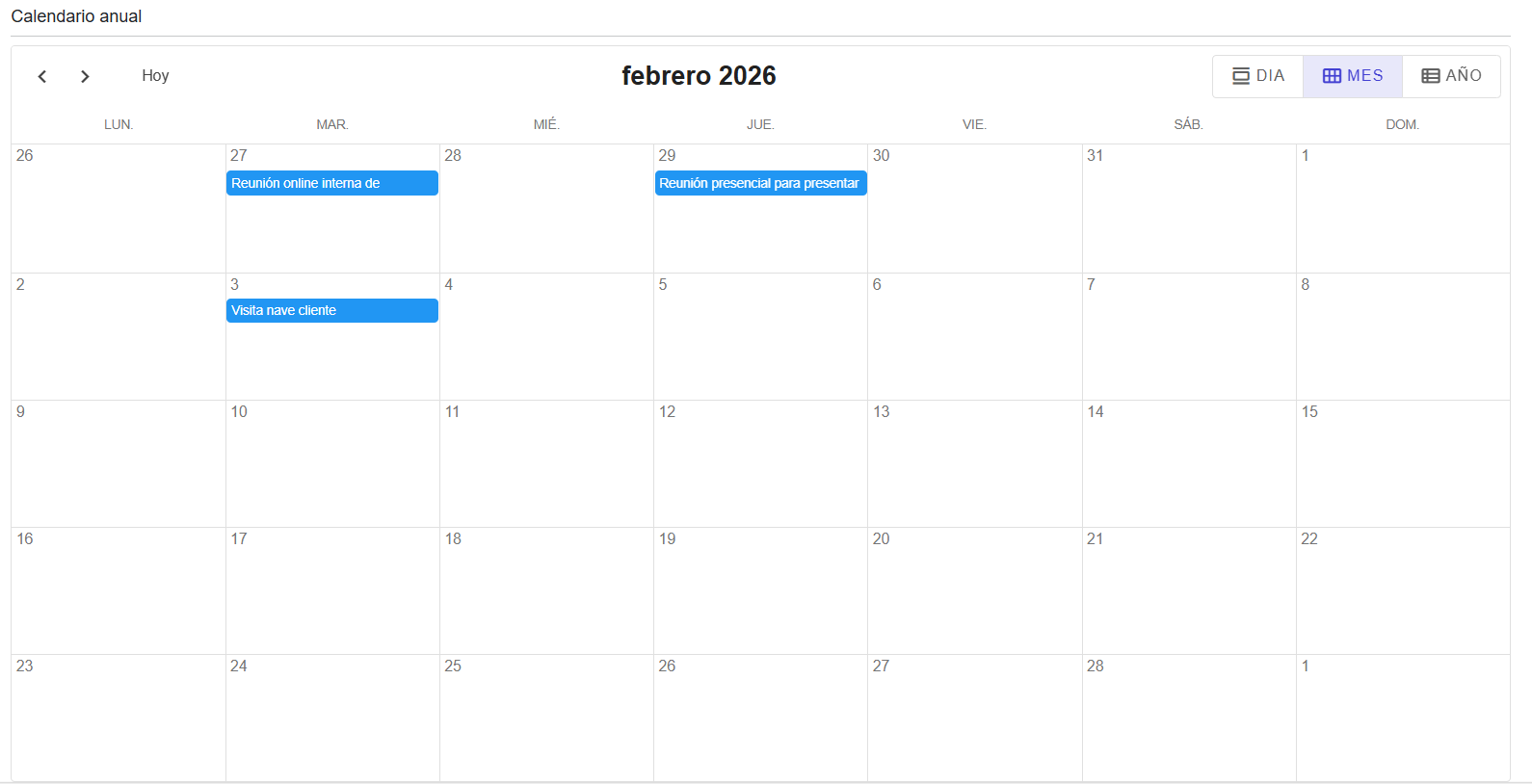 Desde esta herramienta podrás planificar tu actividad comercial registrando reuniones, visitas, llamadas, presentaciones u otros eventos relevantes.