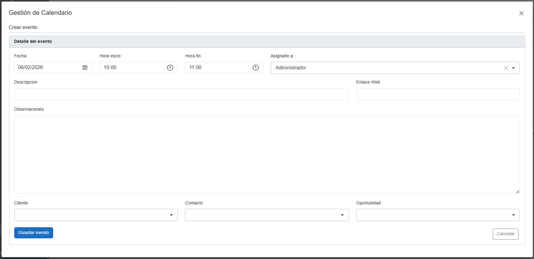 ¶ Crear un evento |