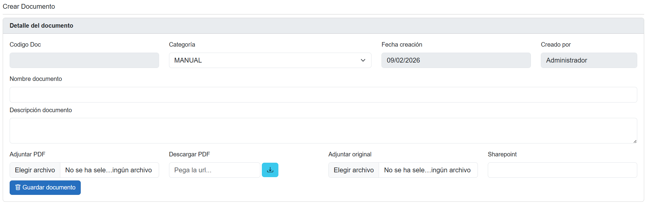 2. Se desplegará el formulario Crear documento donde deberás completar la información solicitada. ![]()