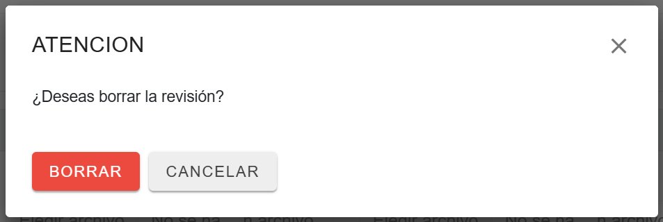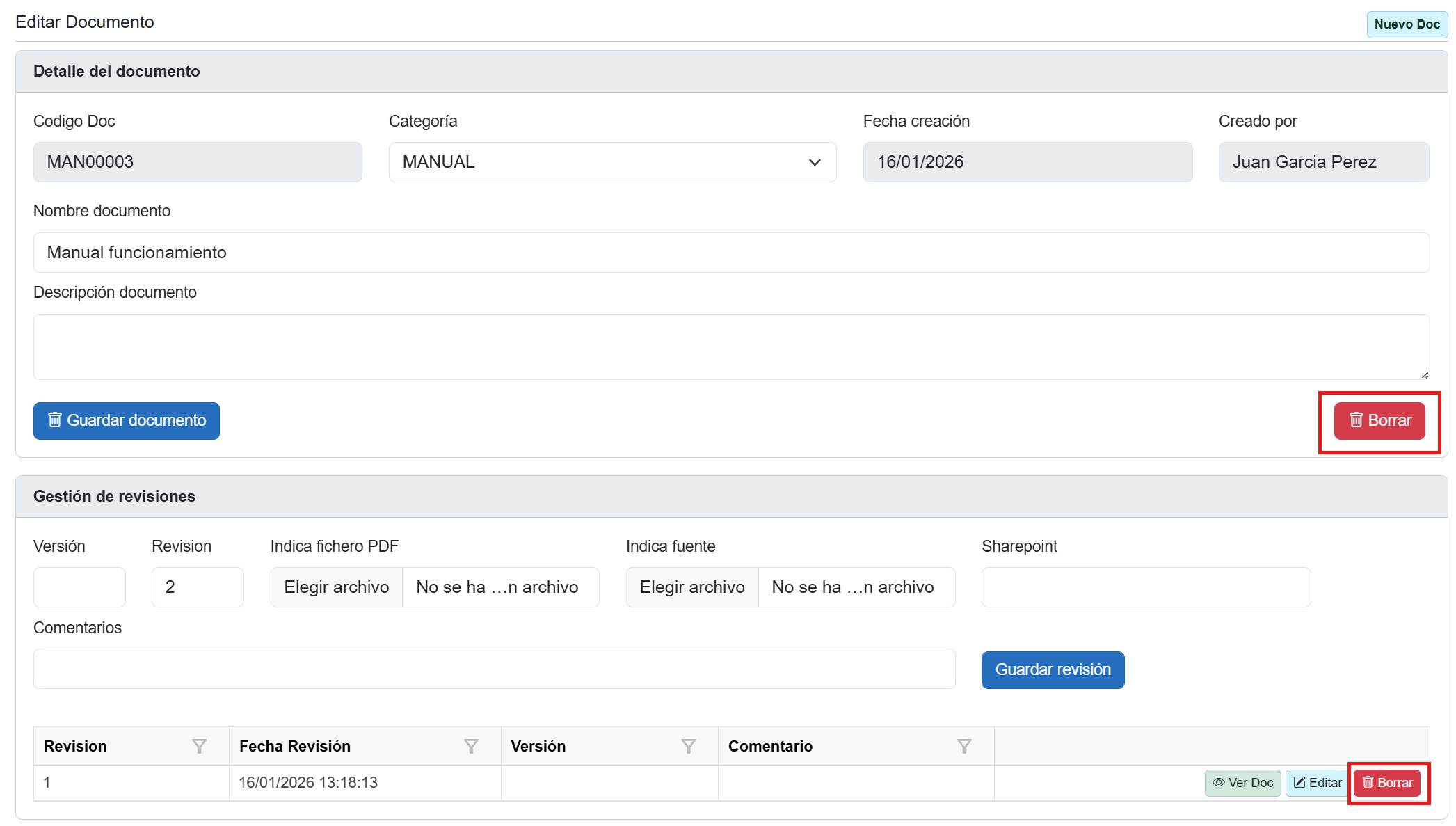 3. Pulsar “Borrar” dentro de Gestión de revisiones si se desea eliminar la última versión del documento. ![]()