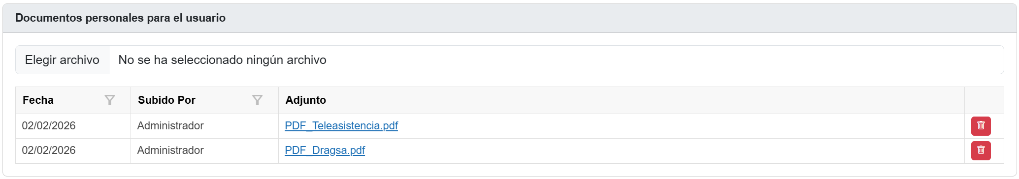 D) Documentos personales para el usuario. Subida y gestión de documentación privada: ![]()