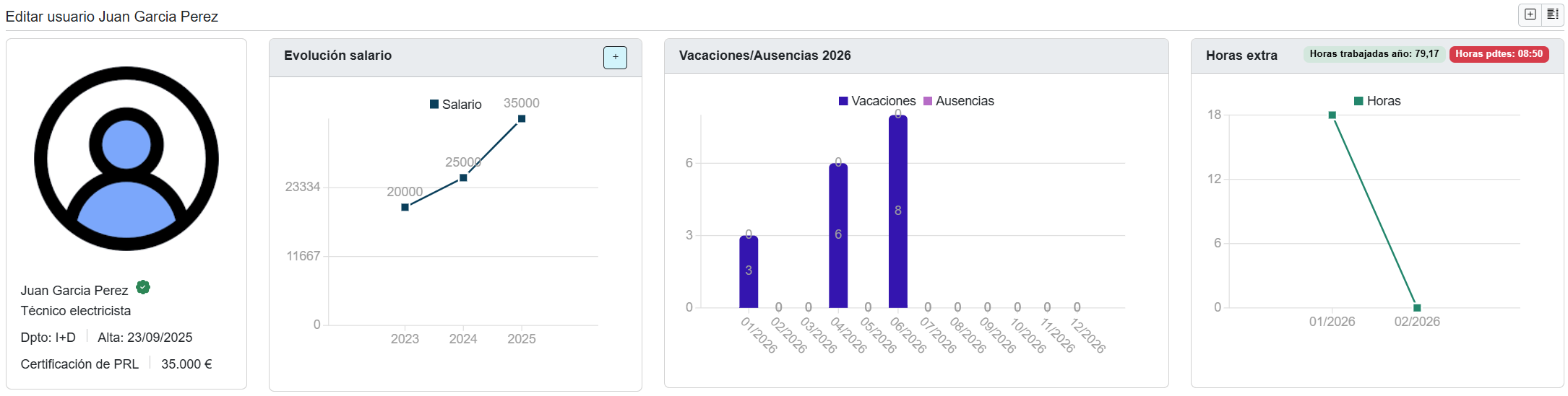 A) Cabecera informativa y paneles. Resumen del empleado (nombre, puesto, estado). ![]()