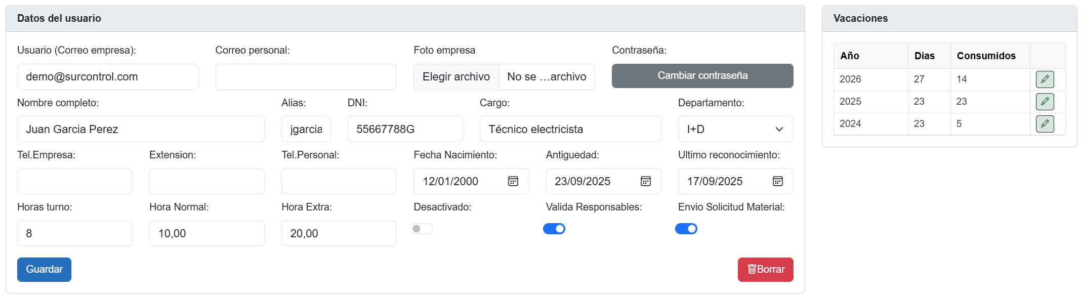 B) Datos del usuario (bloque principal de edición). Campos habituales según pantalla: ![]()