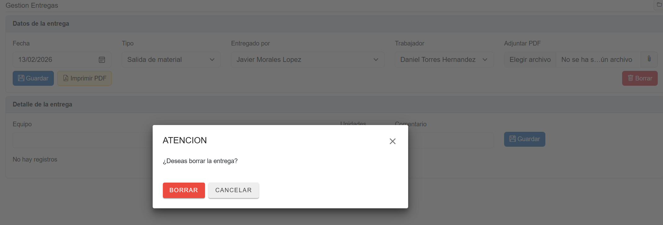 ✅ Mantener un registro completo y trazable de las entregas de material realizadas.