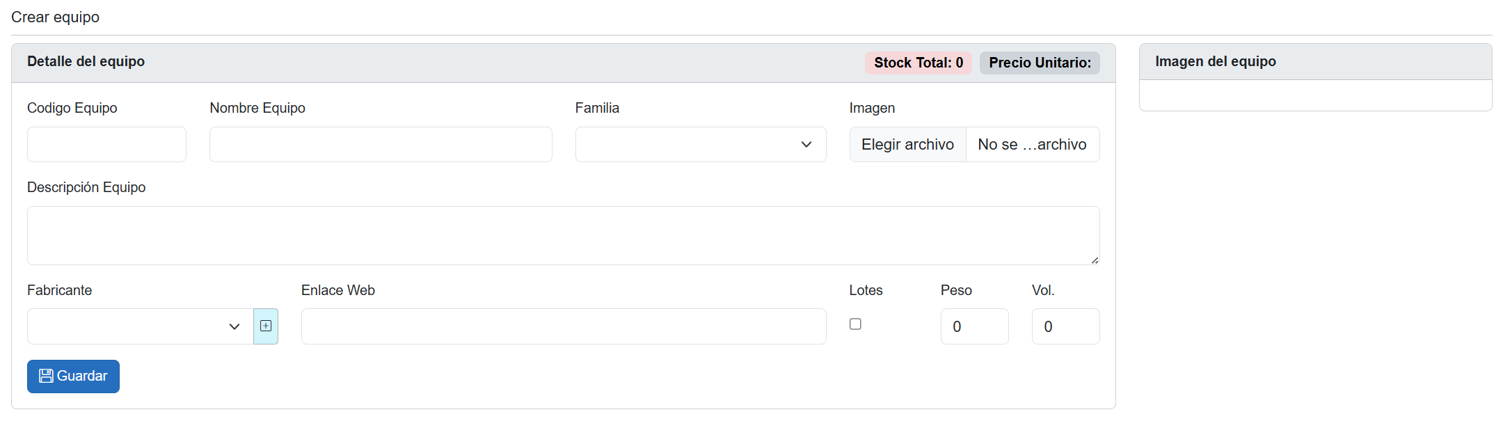 ¶ Registrar nuevo equipo |