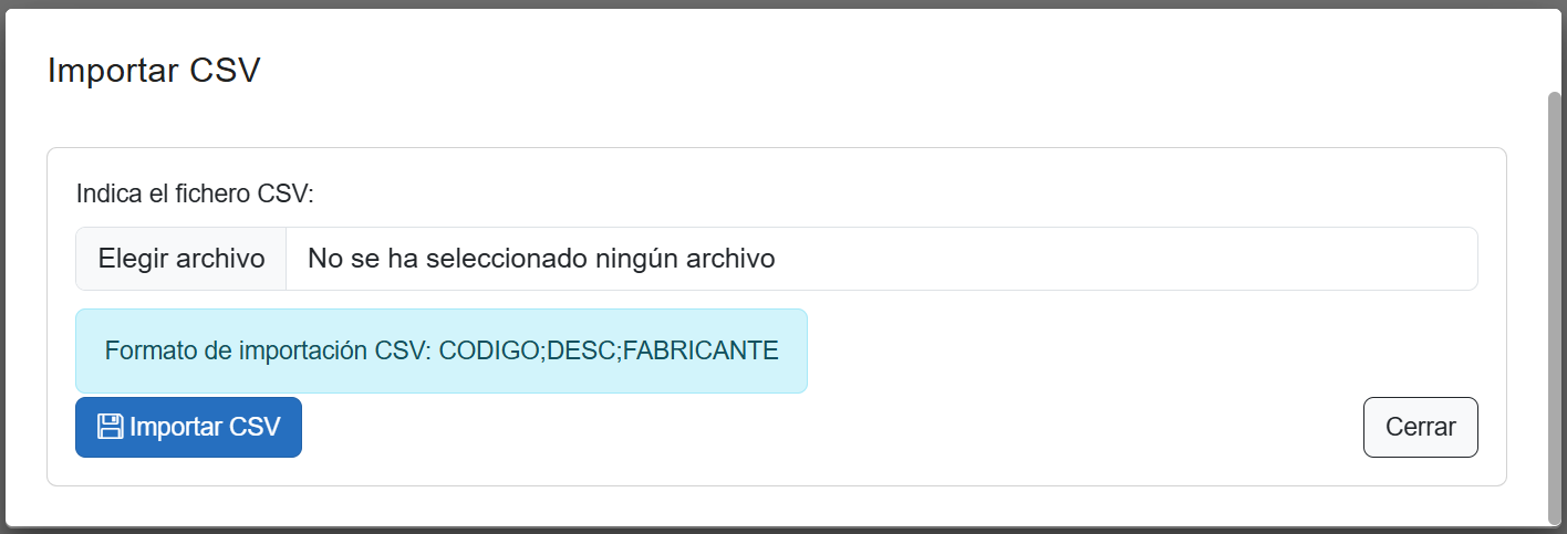 2. Carga el archivo con el formato definido en la ventana emergente y pulsa "Importar CSV"