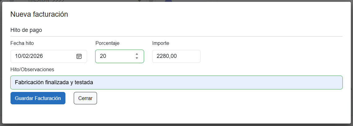 ¶ Editar hito de facturación |