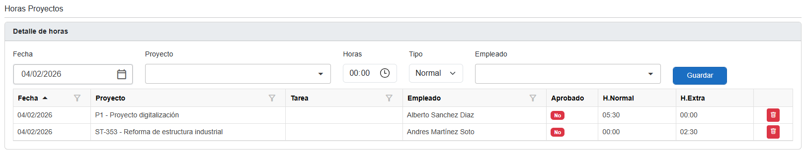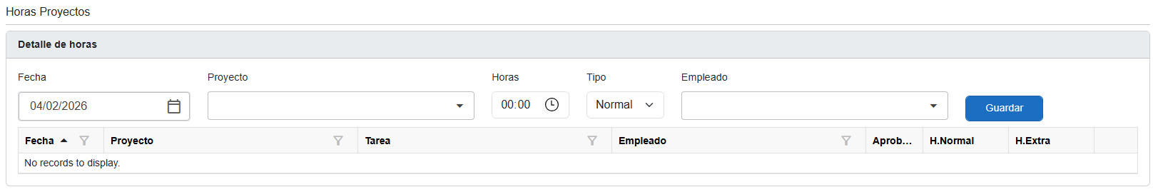 ℹ️ Nota: Desde este apartado NO se aprueban horas, solo se visualizan o registran. La aprobación se realiza desde otros módulos/responsables que gestionan la validación.