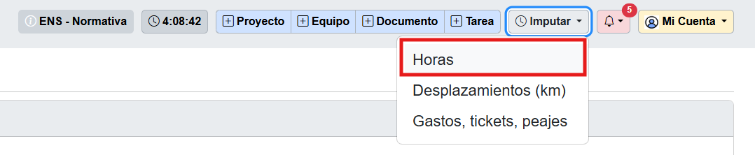 Las horas se pueden imputar desde dos caminos distintos, en función del perfil del usuario y de su nivel de acceso.