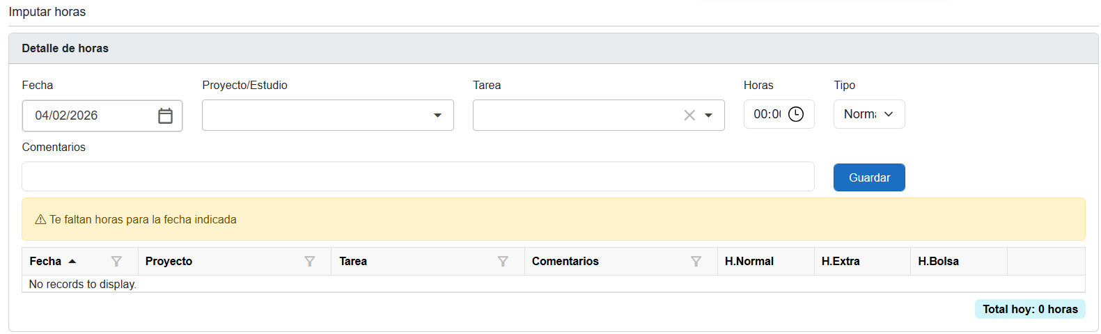 2. En el bloque “Imputar Horas”, completar el formulario.