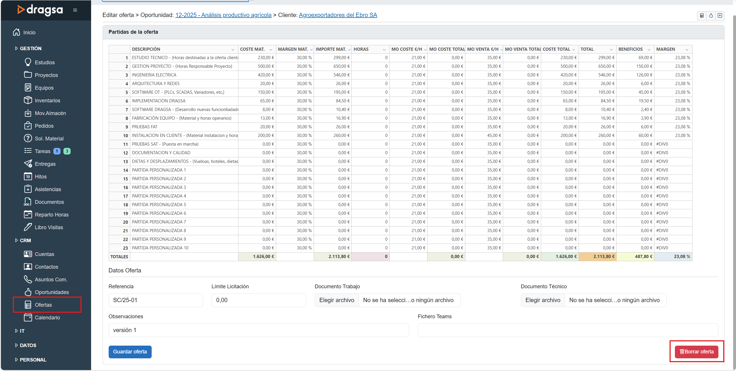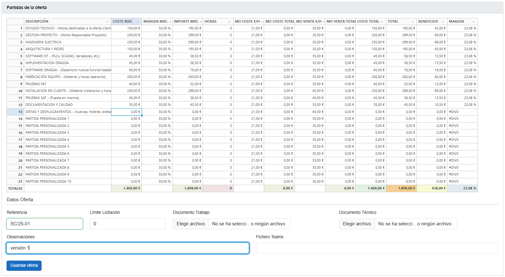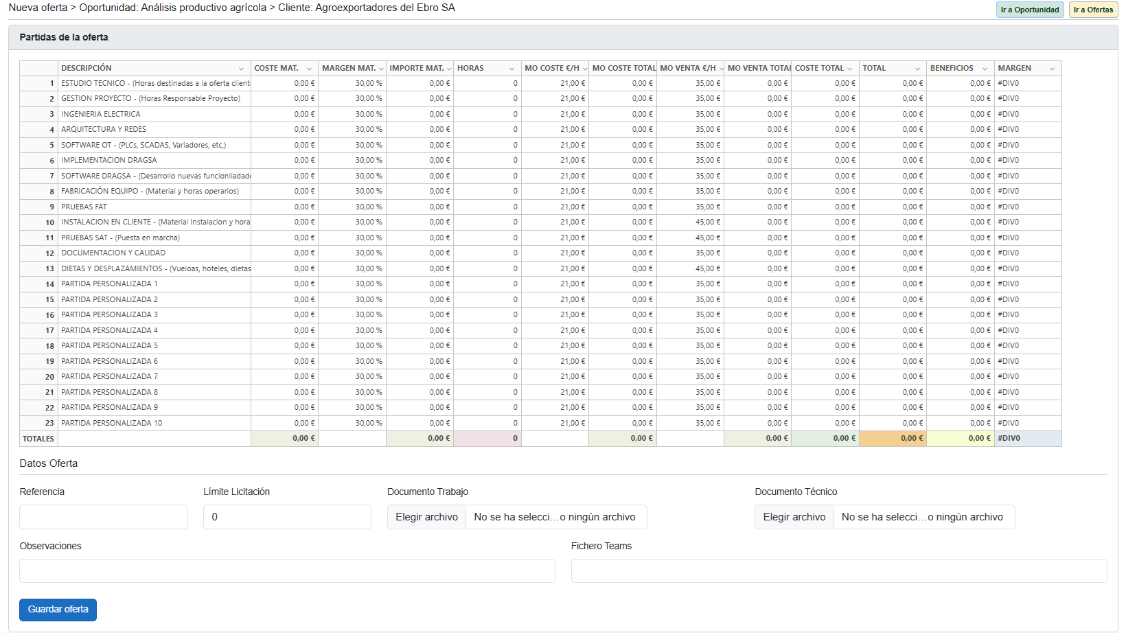 ☑️ Mantener actualizados los datos de cada oferta para garantizar cálculos fiables.