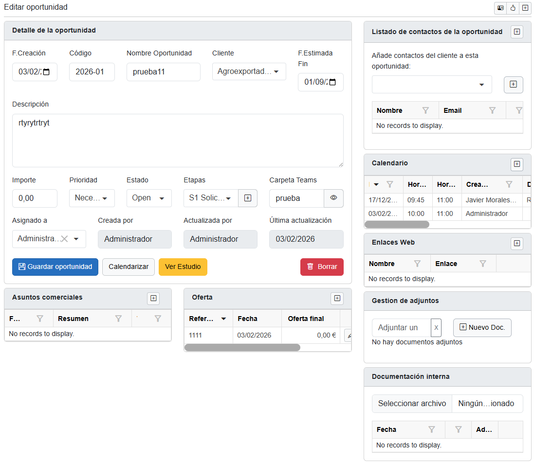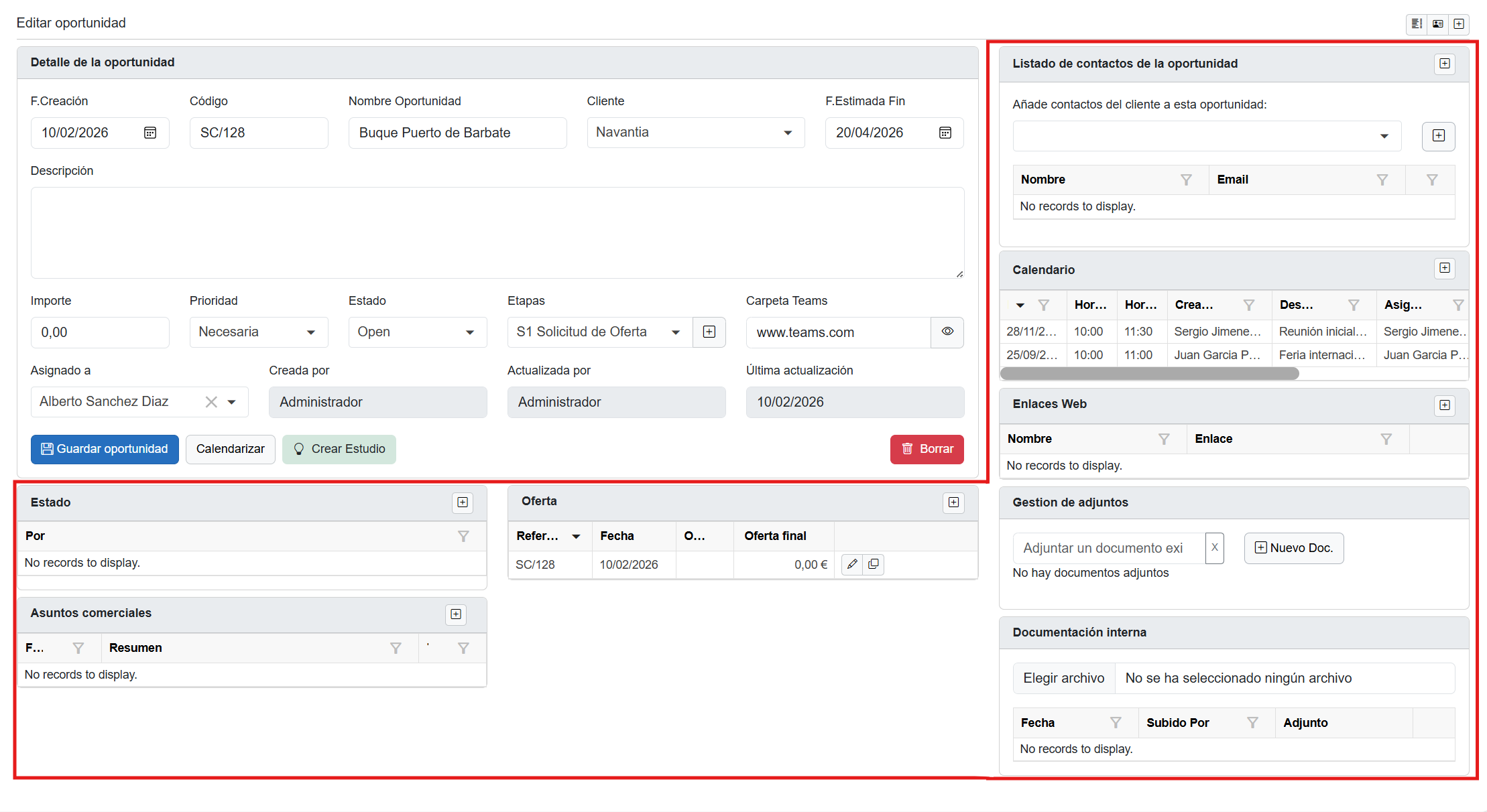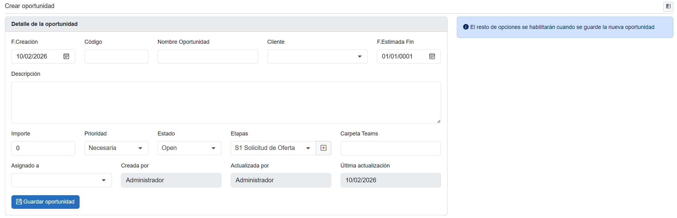 Una vez guardada la oportunidad se despliegan el resto de bloques ![]()