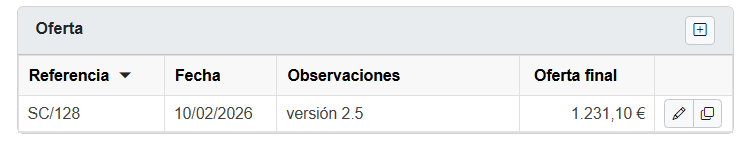 Muestra la información relativa a las ofertas asociadas a la oportunidad. En él se indica: