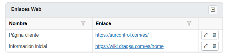 En este bloque se pueden añadir páginas web que se consideren representativas para la oportunidad. En él se indica: