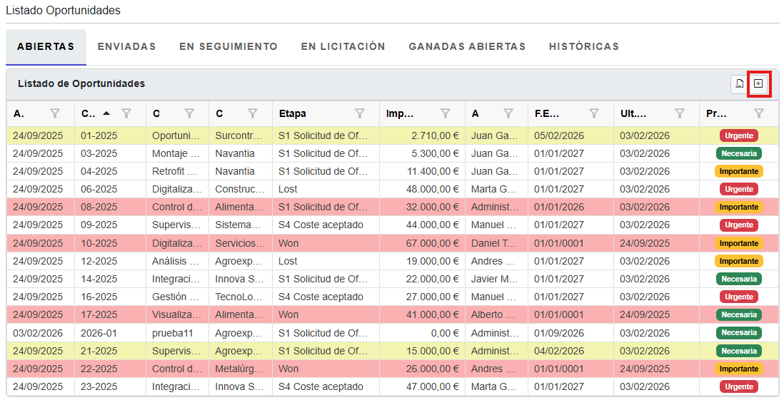 El apartado Oportunidades permite gestionar y realizar el seguimiento de las posibles oportunidades de negocio.