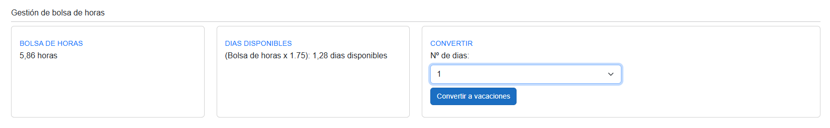 En esta sección puedes seleccionar el número de días que deseas convertir en vacaciones. Pasos: