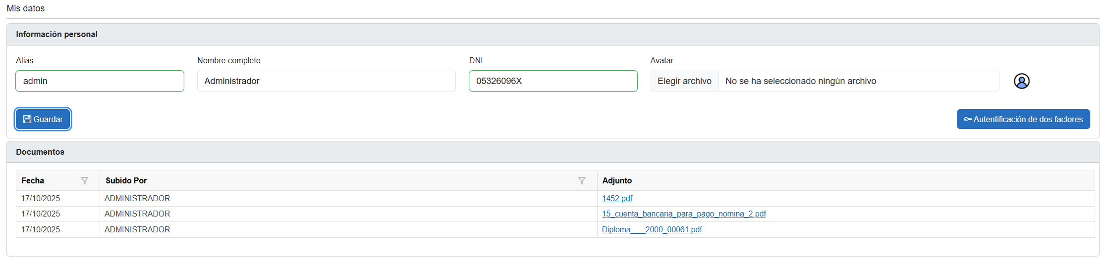 Los usuarios con autorización son los encargados de subir estos documentos desde el apartado documentos internos dentro del módulo PERSONAL.