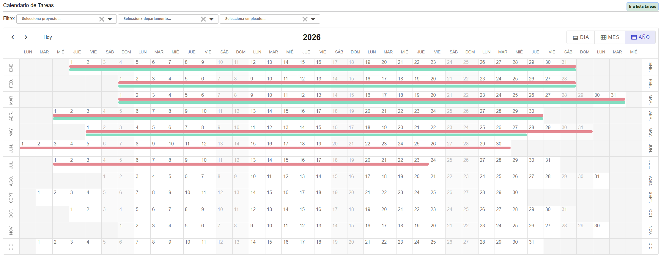 Esta vista permite visualizar la planificación temporal de forma mensual, diaria o anual.