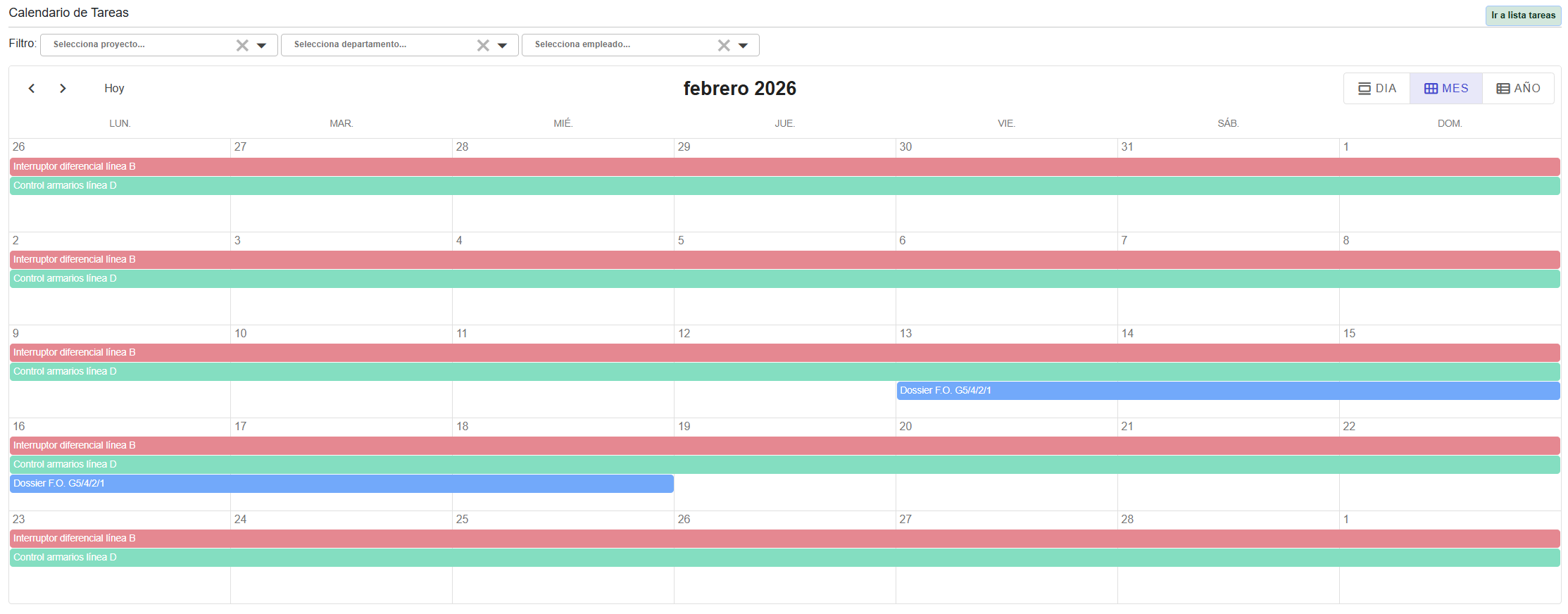 ¶ Pestaña Tareas en el apartado Proyectos |