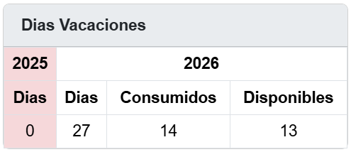 1. Acceso a través del Botón Vacaciones año en la parte superior del módulo. ![]()