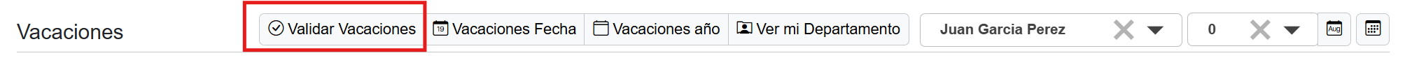 1. Acceso a través del Botón Validar Vacaciones en la parte superior del módulo. ![]()