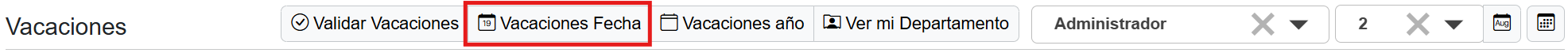 1. Acceso a través del Botón Vacaciones Fecha en la parte superior del módulo. ![]()
