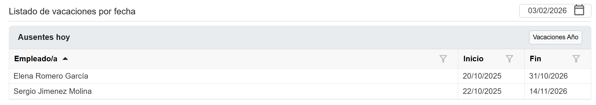 2. Se accede a la pantalla “Listado de vacaciones por fecha”. ![]()