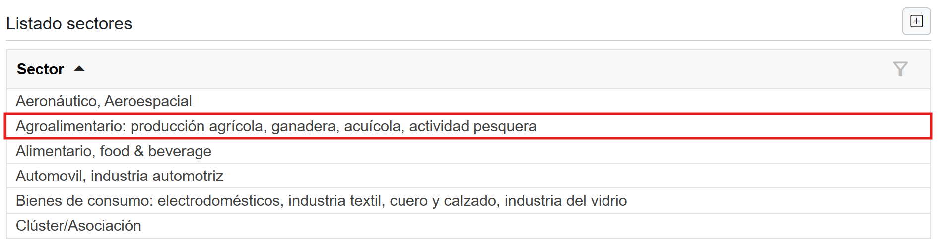 1. Selecciona el sector correspondiente dentro del listado.
